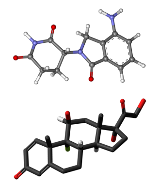 Ball-and-stick model of lenalidomide (top) and dexamethasone (bottom)