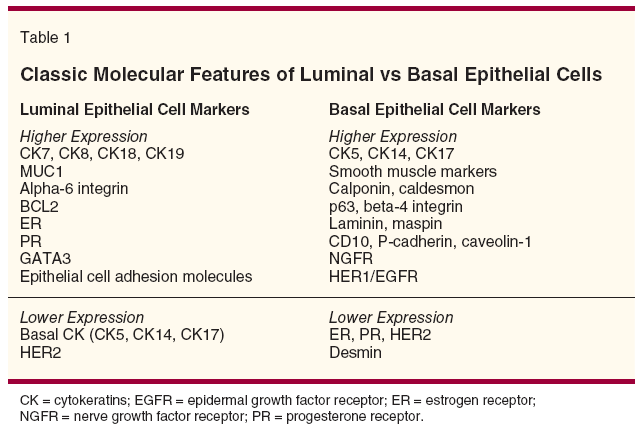 Table 1: Classic Molecular Features of Luminal vs Basal Epithelial Cells