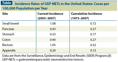 Table: Incidence Rates of GEP-NETs in the United States: Cases per 100,000 Population per Year