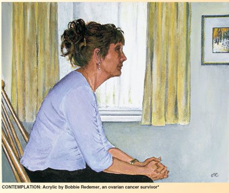 *Award winner (global) in the 2006 Lilly Oncology on Canvas art competition and exhibition. The global winners were announced November 3. US winners were announced December 5. The biennial competition is open to any person diagnosed with cancer; family members, friends, and caregivers; health-care professionals; plus artists and art students. Entrants are asked to express, through art and in narrative, the life-affirming changes that give their cancer journey meaning. More than 2,000 entries from 43 countries were received, including this painting by Bobbie Redemer of Berkshire, England. The program was created by Eli Lilly and Company.