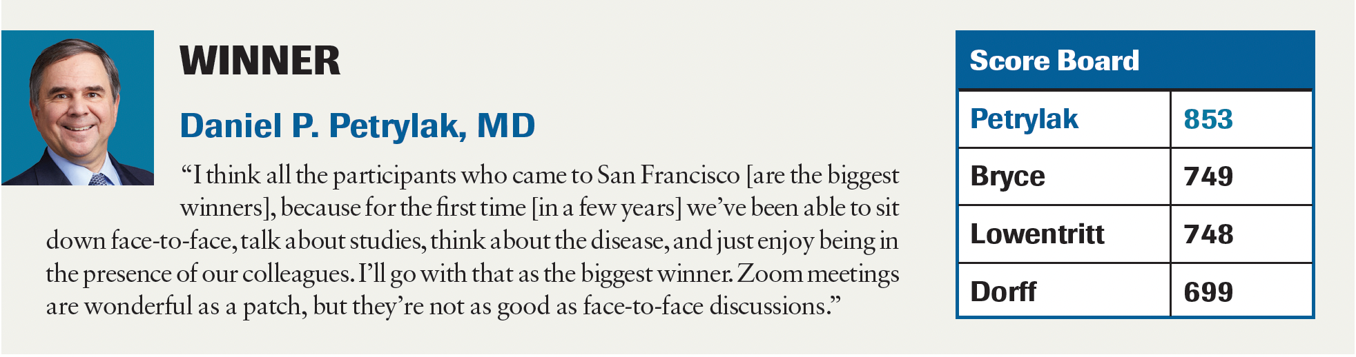 The experts were Alan Haruo Bryce, MD, chair, Division of Hematology/Oncology, Department of Medicine, May Clinic, Phoenix, Arizona; Tanya Dorff, MD, section chief, Genitourinary Disease Program, and associate professor, Department of Medical Oncology & Therapeutics Research, City of Hope, Duarte, California; Benjamin H. Lowentritt, MD, director of Minimally Invasive Surgery and Robotics and the Prostate Cancer Care Program, Chesapeake Urology, Towson, Maryland; and Daniel P. Petrylak, MD, professor of medicine (medical oncology) and urology and coleader of the Cancer Signaling Networks, Yale Cancer Center, New Haven, Connecticut.