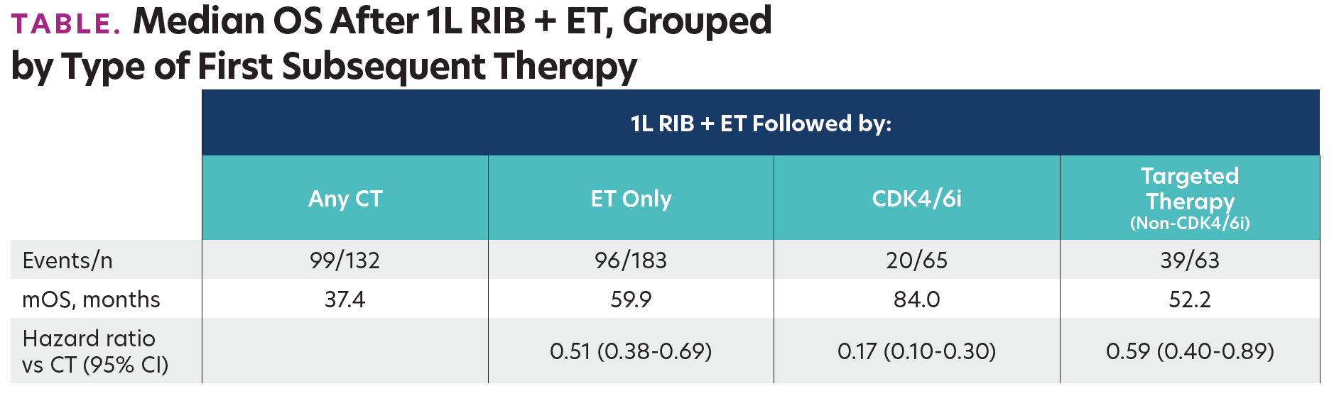 TABLE. Median OS After 1L RIB + ET, Grouped by Type of First Subsequent Therapy