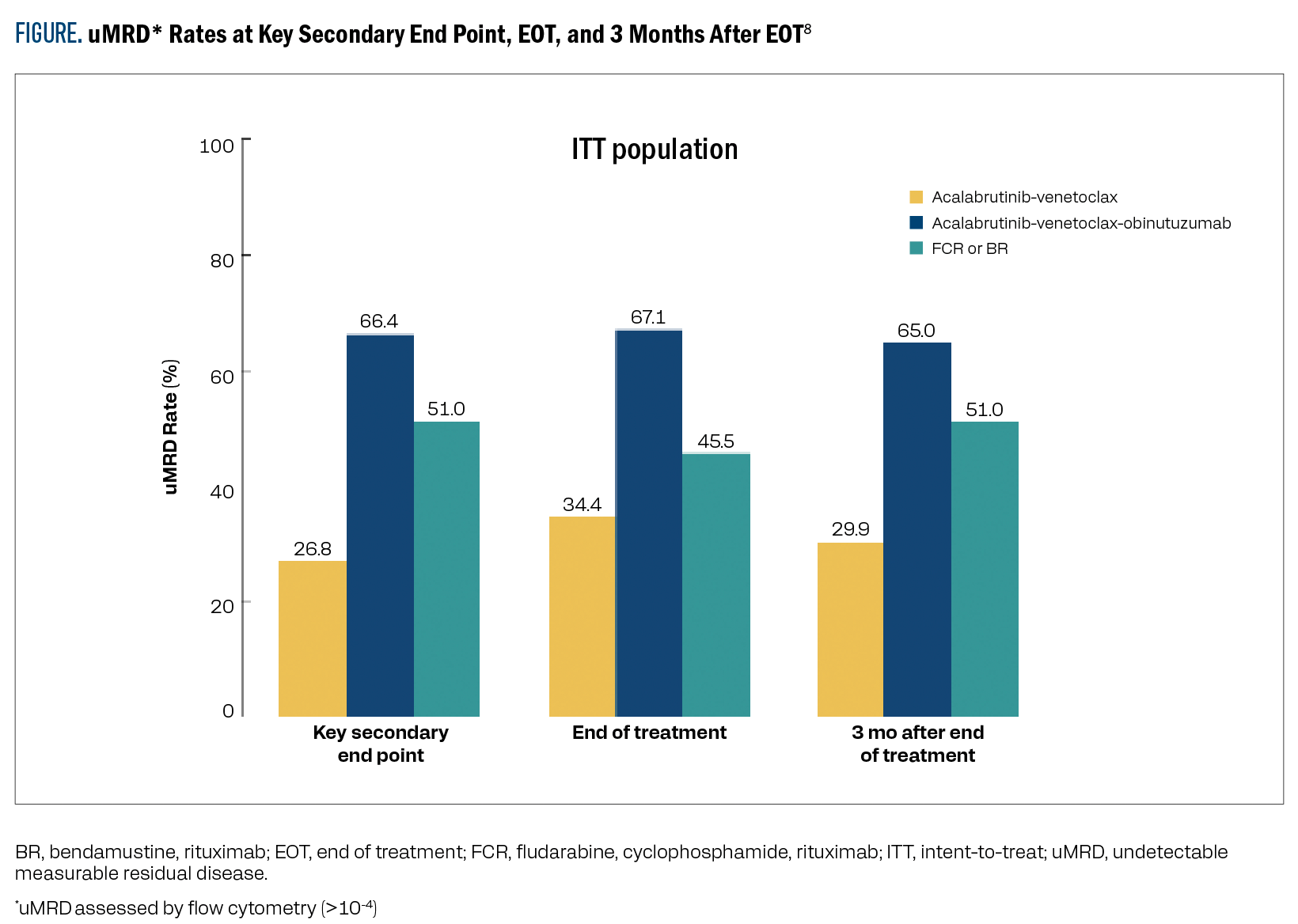 Figure. uMRD* Rates at Key Secondary End Point, EOT, and 3 Months After EOT8