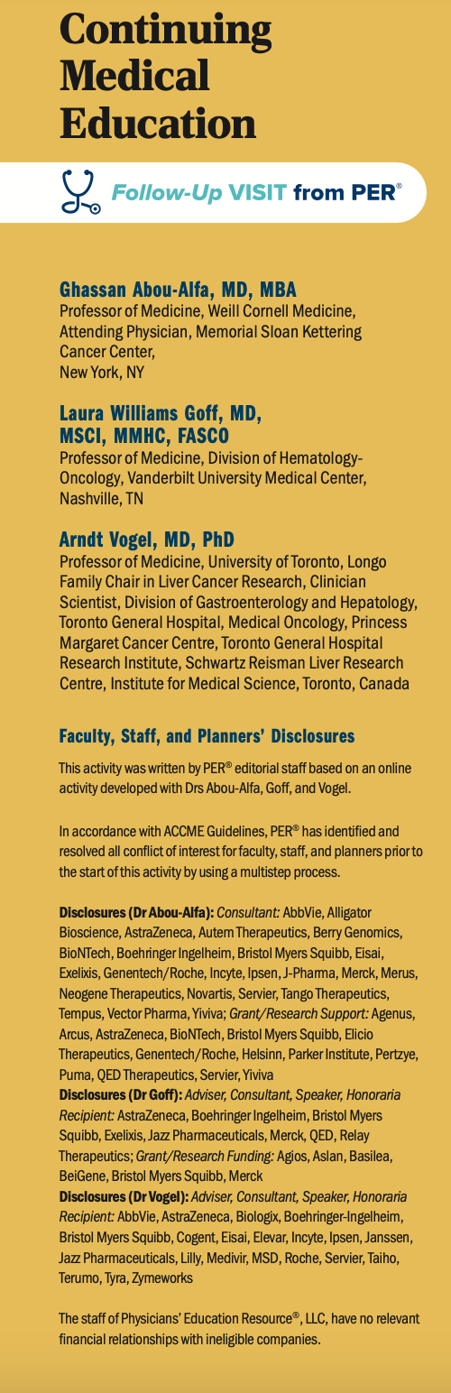 To learn more about this topic, including information on FGFR inhibition in advanced HCC, PARP inhibition for advanced BTC with homologous recombination repair deficiency, and immunotherapy for advanced BTC, go to https://www.gotoper.com/oth25esmogi-activity