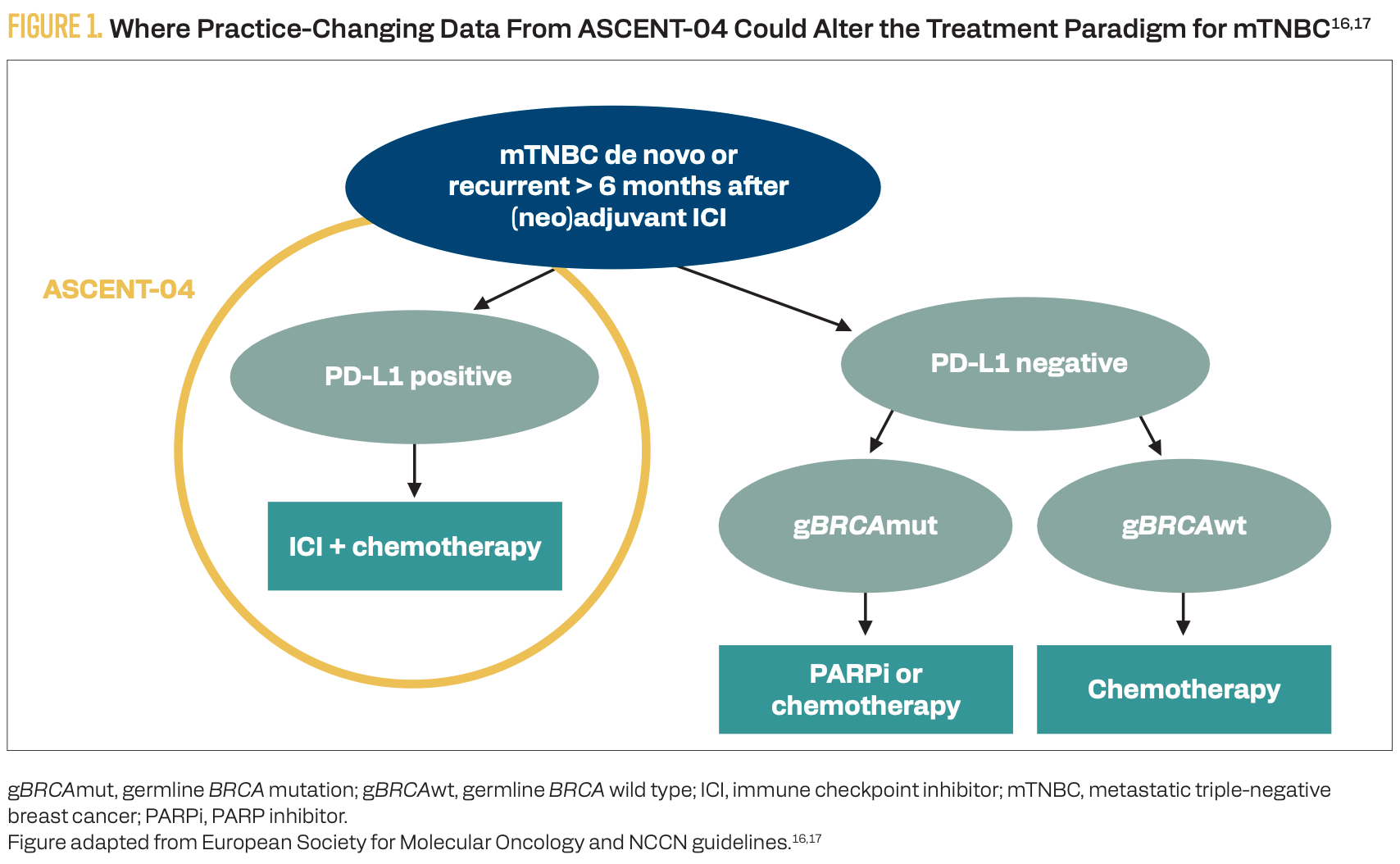 FIGURE 1. Where Practice-Changing Data From ASCENT-04 Could Alter the Treatment Paradigm for mTNBC16,17