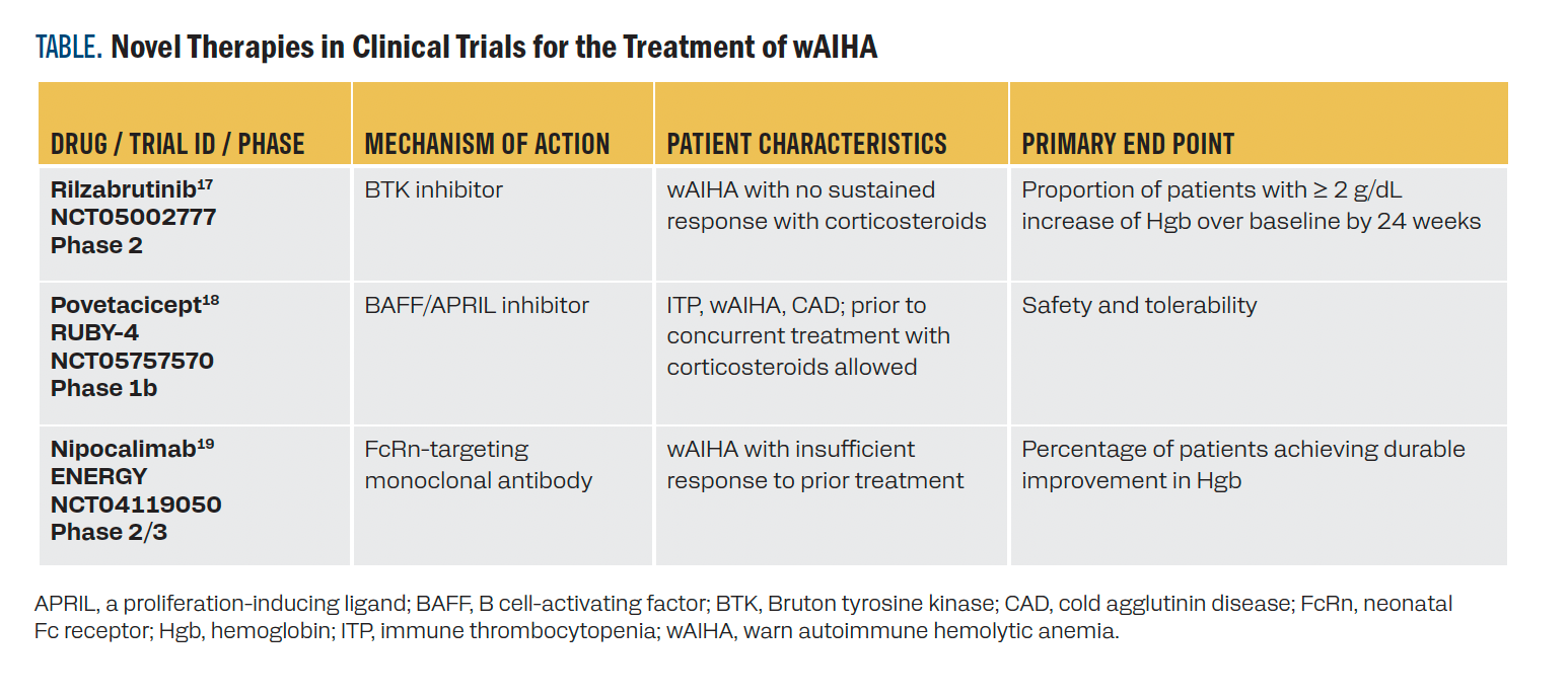 TABLE. Novel Therapies in Clinical Trials for the Treatment of wAIHA