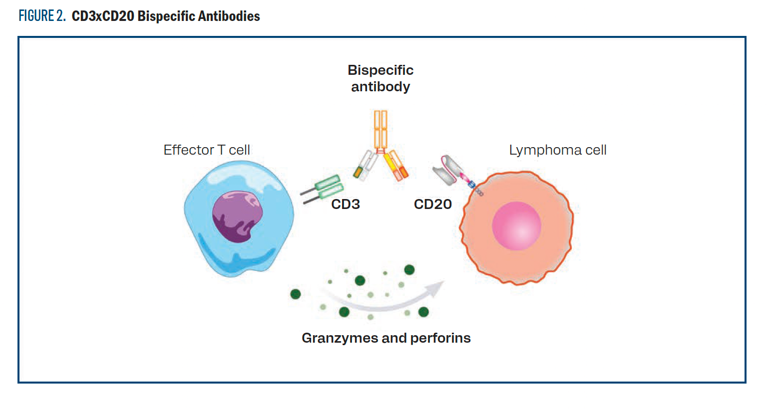 For patients whose disease progressed during or after at least 2 lines of systemic treatment, which can include HSCT or CAR T-cell therapy, use of the CD3×CD20 bispecific antibodies (BsAbs) epcoritamab or glofitamab can be an option (Figure 2).1
