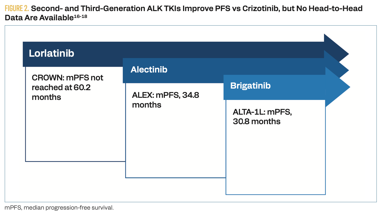 Figure 3. Second- and Third-Generation ALK TKIs Improve PFS vs Crizotinib, but no Head-to-Head Data are Available