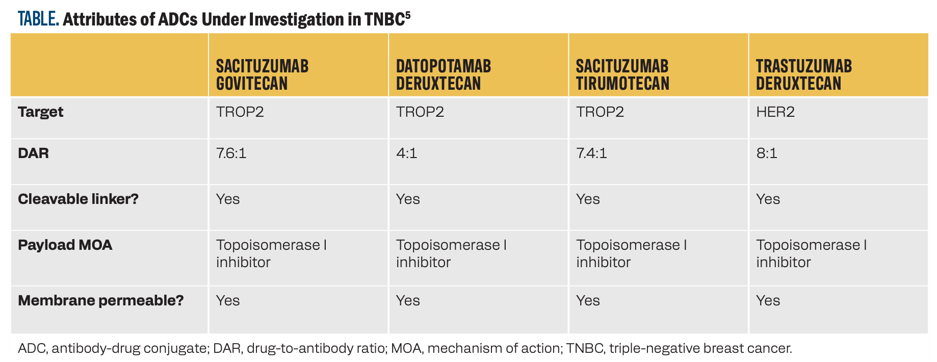 TABLE. Attributes of ADCs Under Investigation in TNBC5