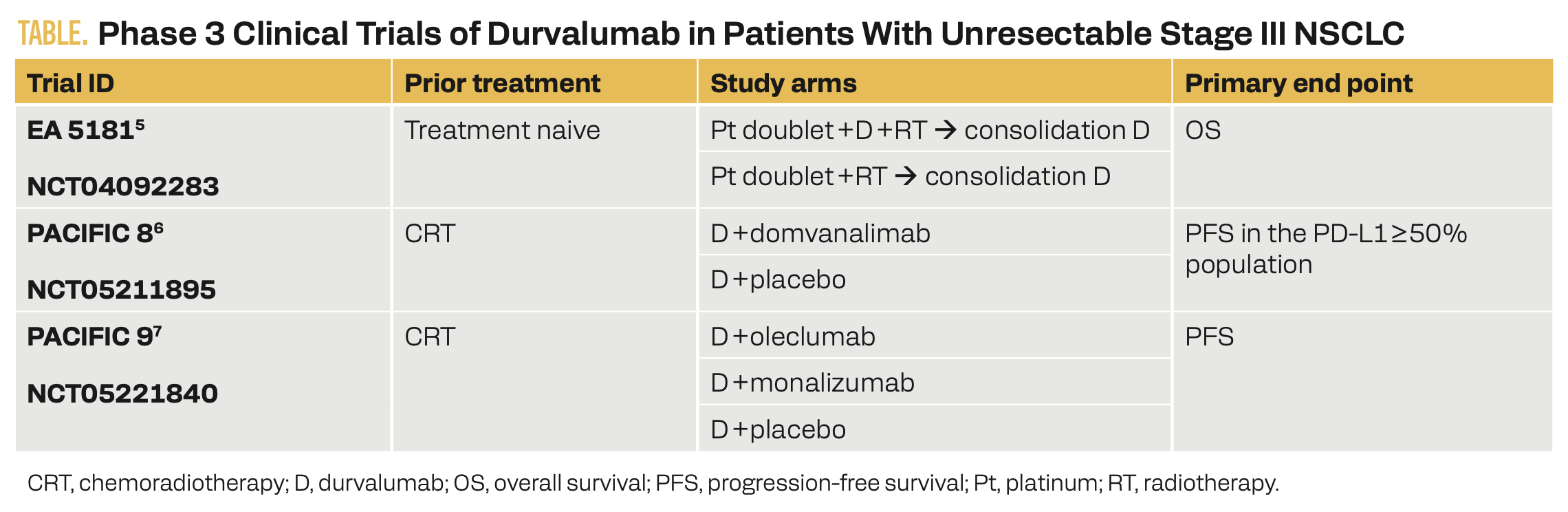 TABLE. Phase 3 Clinical Trials of Durvalumab in Patients With Unresectable Stage III NSCLC
