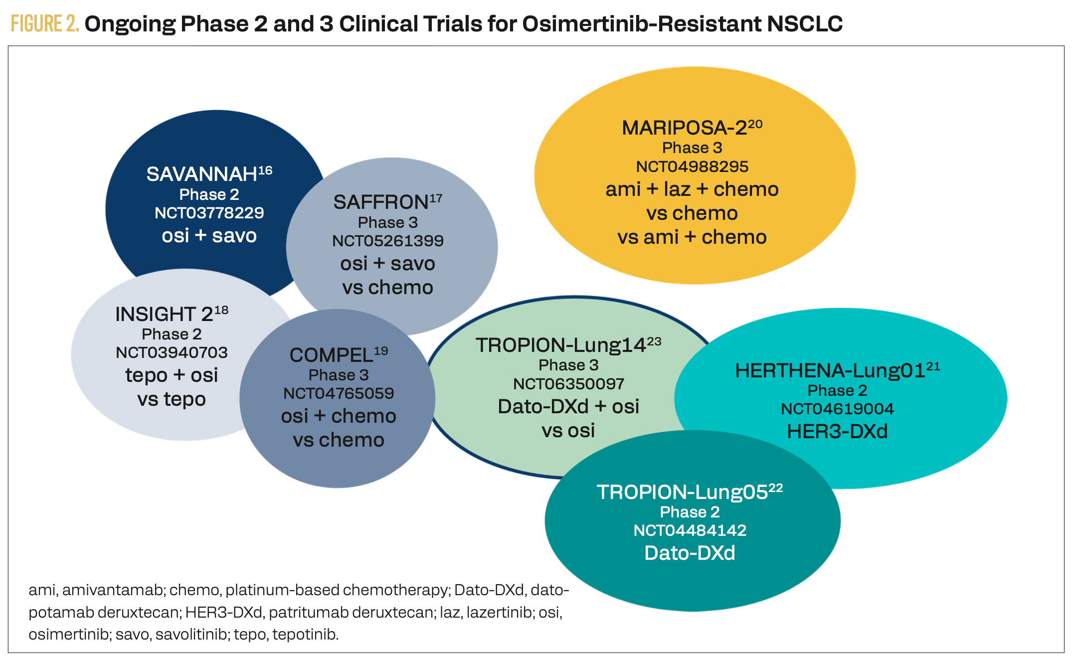 FIGURE 2. Ongoing Phase 2 and 3 Clinical Trials for Osimertinib-Resistant NSCLC