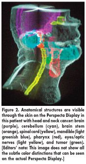"Our study found that the Perspecta Display provides users complex information in a more efficient and natural way," Dr. Chu said. "Perspecta allows you to see the 3D structure (Figure 2) much more clearly than a conventional imaging display." Dr. Chu said the study will include 30 patients in the next phase, with patients more evenly distributed among the three participating institutions, and will cover a variety of cancer sites (eg, prostate and head and neck).