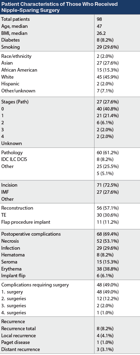 Patient Characteristics of Those Who Received Nipple-Sparing Surgery