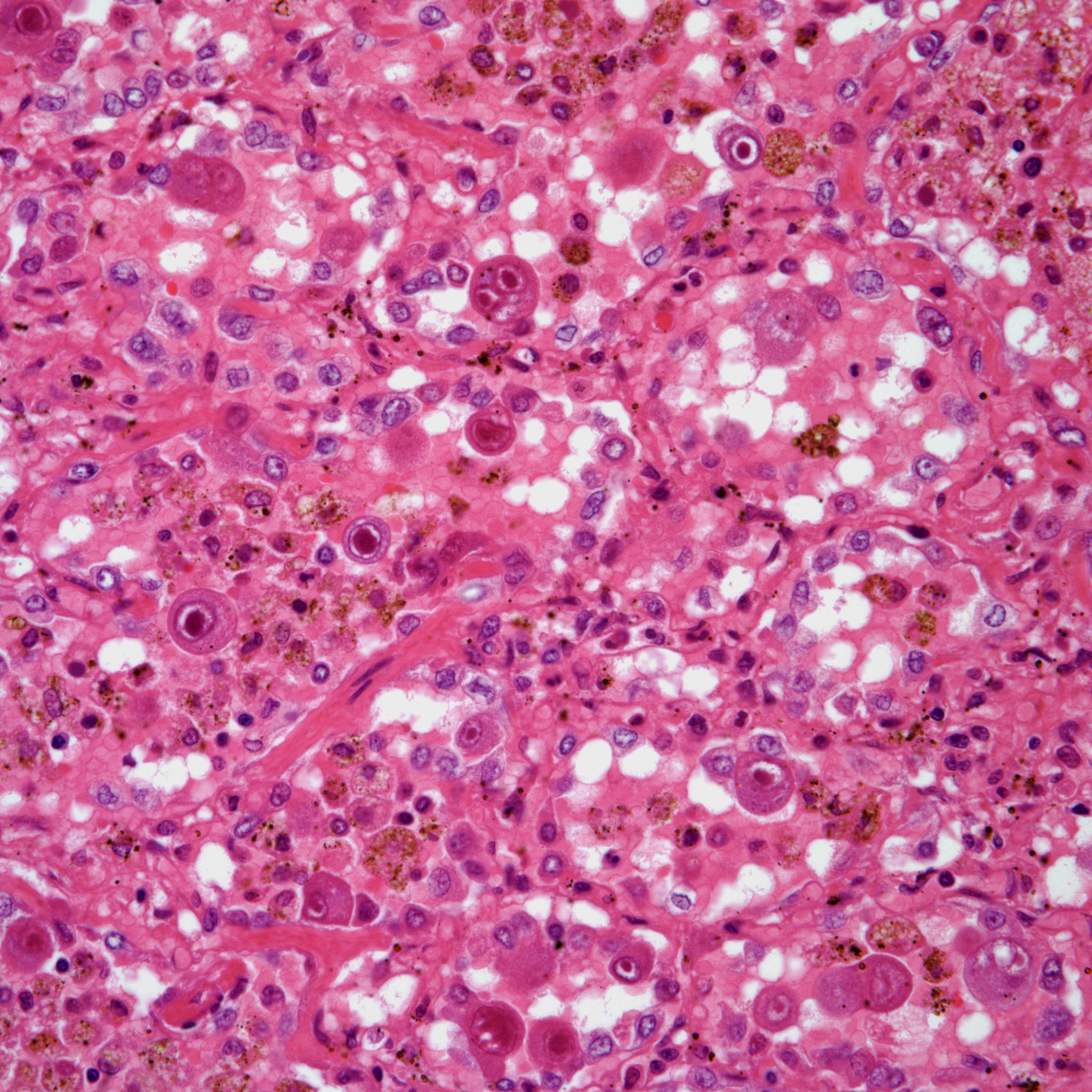 A 44-year-old woman presents with a mass in the right side of the neck. In addition, the patient complains of general malaise, cough, and shortness of breath. Laboratory results show the presence of elevated serum level of calcium. Surgical resection of the mass is performed.