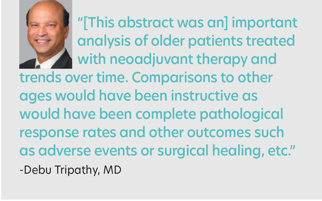 Elderly patients (65 y and older) with TNBC or HER2-postive breast cancer from 2005 to 2020 at a single institution were reviewed. Univariate and multivariate analysis evaluated rates and predictive factors of neoadjuvant chemotherapy treatment use.