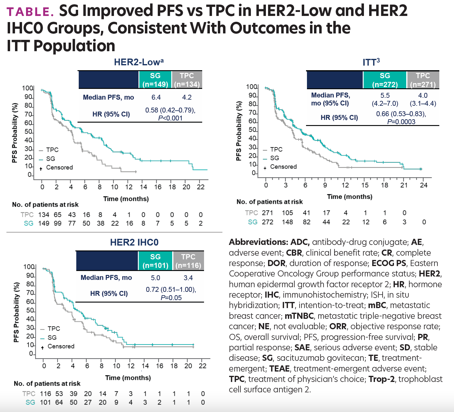 TABLE. SG Improved PFS vs TPC in HER2-Low and HER2 IHC0 Groups, Consistent With Outcomes in the ITT Population