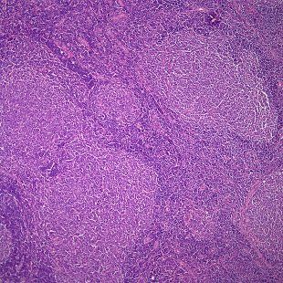 A 48-year-old man presents with diffuse lymphadenopathy. After further evaluation, a biopsy is performed. What is your diagnosis?