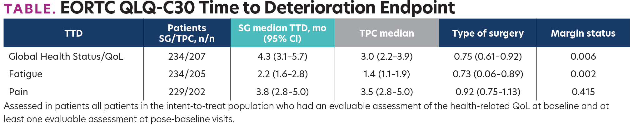 TABLE. EORTC QLQ-C30 Time to Deterioration Endpoint