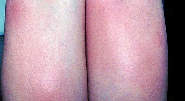 A 58-year-old woman was diagnosed with ovarian carcinoma and initially treated by surgery and adjunctive chemotherapy. Following a remission of 3 years, she developed biopsy-confirmed recurrent/metastatic disease involving bones, inguinal lymph nodes, and soft tissue of the back. Following a failure of response to platinum-based treatment, she was given gemcitabine (Gemzar) in a dose of 1000 mg/m2. Two days after her first infusion she developed tender swelling and mild to moderate erythema of both legs, particularly striking in the posterior aspect (see photo). The patient was afebrile.