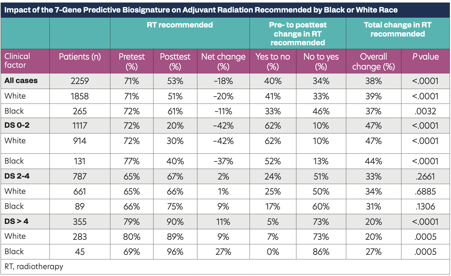 Impact of the 7-Gene Predictive Biosignature on Adjuvant Radiation Recommended by Black or White Race