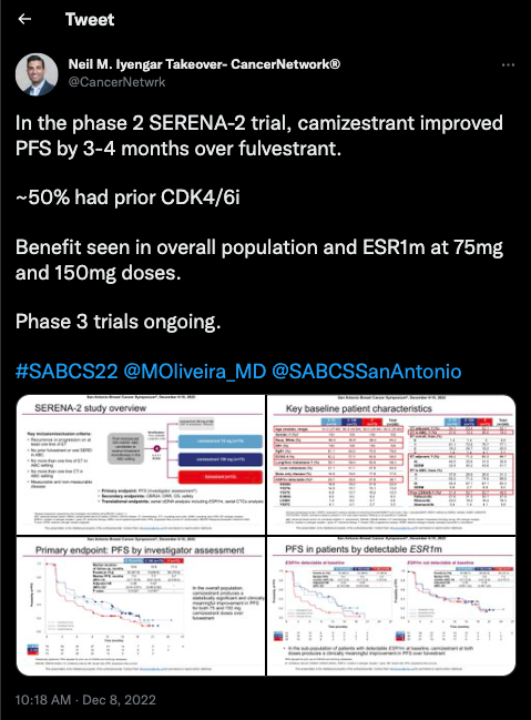 During the 2022 San Antonio Breast Cancer Symposium, Neil M. Iyengar, MD, took over the CancerNetwork® Twitter to review key presentation takeaways.