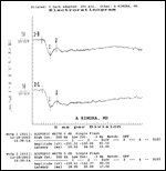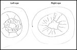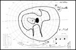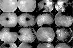 The patient’s short-term memory improved after treatment of the intracranial metastasis, but his visual complaints of flashing lights and floaters persisted. There was no improvement with systemic steroids. In December 2002, a retinal specialist evaluated him. At that time, the patient reported a bright yellow-white light that moved in and out of visual fields and faded within seconds. (Figure 1). Moth-eaten visual fields and an essential normal retinal exam were documented (Figures 2 through 4). Visual acuity was intact with 20/30 OD (oculus dexter, or right eye) and 20/40 OS (oculus sinister, or left eye). An electroretinogram revealed a marked loss of b-wave amplitude, pathognomonic for melanoma-associated retinopathy (Figure 5).