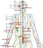 Human body meridians used in acupuncture. Figure reproduced from Wikimedia Commons, with permission from author “KVDP.”