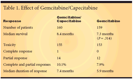 BASEL, SWITZERLAND-The combination of gemcitabine(Gemzar)/capecitabine (Xeloda)(GemCap) failed to prolong survivalmore than gemcitabine (Gem) alone,