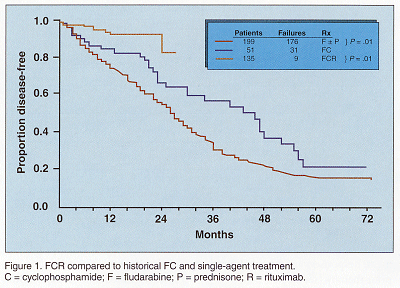 HOUSTONThe combination of fludarabine (Fludara) and cyclophosphamide (Cytoxan, Neosar) plus rituximab (Rituxan), known as FCR, produces "a higher complete remission rate than prior regimens tested" against chronic lymphocytic leukemia (CLL), reported William Wierda, MD, of the department of leukemia at The University of Texas M. D. Anderson Cancer Center in Houston. In addition, molecular remissions can be demonstrated in a significant number of those responding to the FCR combination.