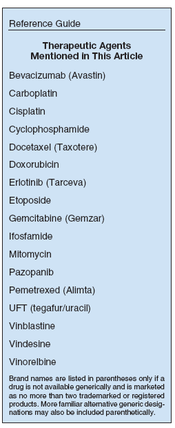 9. Waller D, Peake MD, Stephens RJ, et al: Chemotherapy for patients with non-small cell lung cancer: The surgical setting of the Big Lung Trial. Eur J Cardiothorac Surg 26:173-182, 2004.