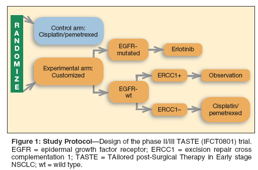 Rather than asking whether neoadjuvant or adjuvant chemotherapy should be used, the key issue may be to determine which patients should be treated with adjuvant and/or neoadjuvant therapy. Developing molecular-based therapeutic strategies will be one of the major challenges over the next few years. A number of trials-including the TAilored post-Surgical Therapy in Early-stage NSCLC (TASTE) trial (IFCT 0801)-examining the use of personalized regimens for adjuvant chemotherapy are therefore underway (Figure 1).