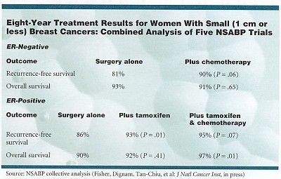 Based on presentations by Dr. Fisher and others, the November 2000 NIH consensus panel stated that, for women with tumors 1 cm or smaller, the decision to consider chemotherapy should be individualized.