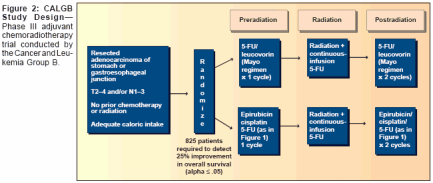 Gastric adenocarcinoma remainsa difficult problem for the oncologycommunity. Although the majorityof patients with stage IA disease arecured with surgical resection, fewerthan 15% of patients in the UnitedStates are diagnosed at that stage.[3]Patients are often diagnosed with locallyadvanced disease, and despiteattempts at curative resection, themajority will develop tumor recurrence.INT 0116 has established adjuvant5-FU, leucovorin, andradiotherapy as the new standard ofcare after a curative gastrectomy.However, given the modest benefitassociated with this treatment, futuregenerations of clinical trials will needto incorporate more rational, targetedtherapies into the adjuvant treatmentof gastric adenocarcinoma.