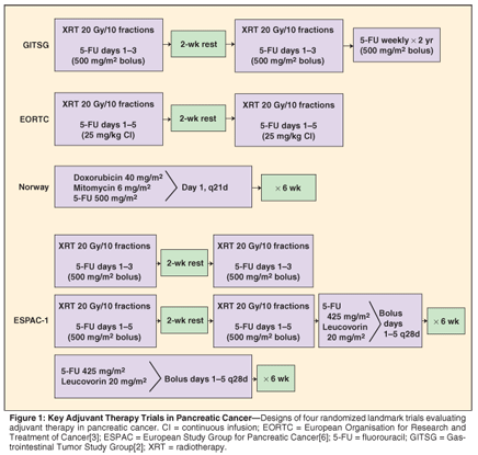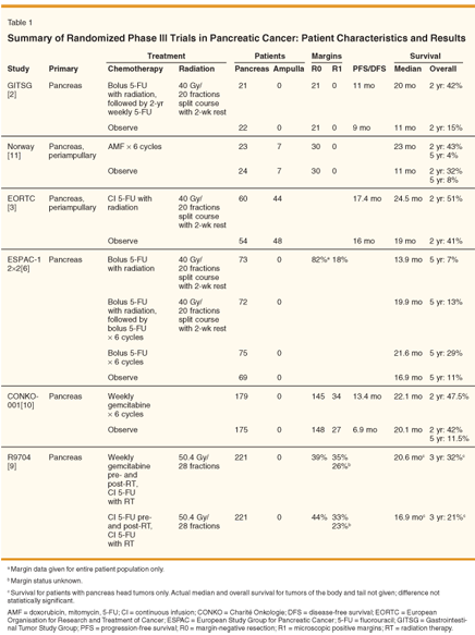 Since the publication of the meta-analysis, other randomized trials have been reported (Table 1). Based on data showing the benefit of gemcitabine (Gemzar) in the metastatic setting, the Radiation Therapy Oncology Group (RTOG) opted to test its use in the adjuvant setting.