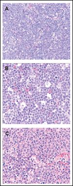 These studies found that 17%[47] and 34%[48] of cases identified as having the Burkitt gene-expression profile had previously been classified as DLBCL or unclassifiable high-grade lymphoma by expert hematolpathologists, based on WHO criteria. On the contrary, 0.5% to 4% of the cases that had been called BL or ABL lacked the genetic signature of BL, which implies that these cases could represent DLBCL or a high-grade lymphoma rather than BL. Both studies revealed an occasional absence of the c-myc rearrangement in some cases. These studies proved the superiority of using gene signature in BL diagnosis over WHO criteria, although this is not easily applied in the clinic because of the complexities of the test. The results from the study by Dave et al showed a poor outcome for patients with the molecular signature of BL treated with CHOP-like regimens,[47] emphasizing the importance of this distinction.