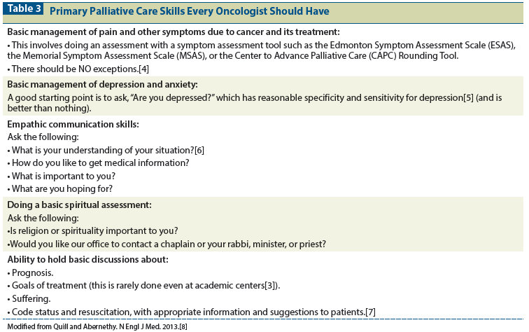 Table 3: Primary Palliative Care Skills Every Oncologist Should Have