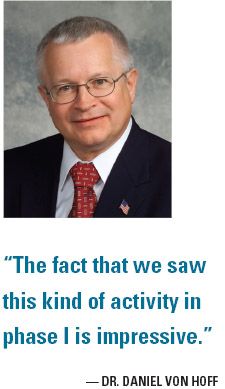 Daniel D. Von Hoff, MD, physician in chief at the Translational Genomics Research Institute and chief medical officer for the Scottsdale Clinical Research Institute, presented the results in 20 patients who received nab-paclitaxel 100 to 150 mg/m2 and gemcitabine 1,000 mg/m2. Planned enrollment is 42 patients.