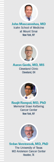 The expert panel also included Aaron Gerds, MD, MS, a physician at the Cleveland Clinic as well as assistant professor in the School of Medicine and member of the Developmental Therapeutics Program of Case Comprehensive Cancer Center at Case Western Reserve University in Cleveland, Ohio; Raajit Rampal, MD, PhD, a hematologic oncologist at Memorial Sloan Kettering Cancer Center in New York; and Srdan Verstovsek, MD, PhD, director of the Hanns A. Pielenz Clinical Research Center for Myeloproliferative Neoplasms, chief of the Section for Myeloproliferative Neoplasms, and professor in the Department of Leukemia, Division of Cancer Medicine, at The University of Texas MD Anderson Cancer Center in Houston.