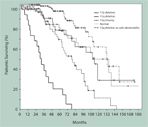 Deletion of the short arm of chromosome 17 (del[17p]) is associated with a very aggressive clinical course[31] and is predictive of decreased progression-free survival (PFS), lack of response to therapy, short response duration, and short OS (Figure).[31,33,34] Del(17p) has been described in as few as 7% of patients nave to treatment and in as many as 33% of patients with advanced, relapsed disease.[31,35,36] Most patients with del(17p) have other associated chromosomal abnormalities.[37] However, there is some variability in prognosis among patients who carry a 17p deletion,[37] and not all patients with this deletion are destined to have rapidly advancing disease.