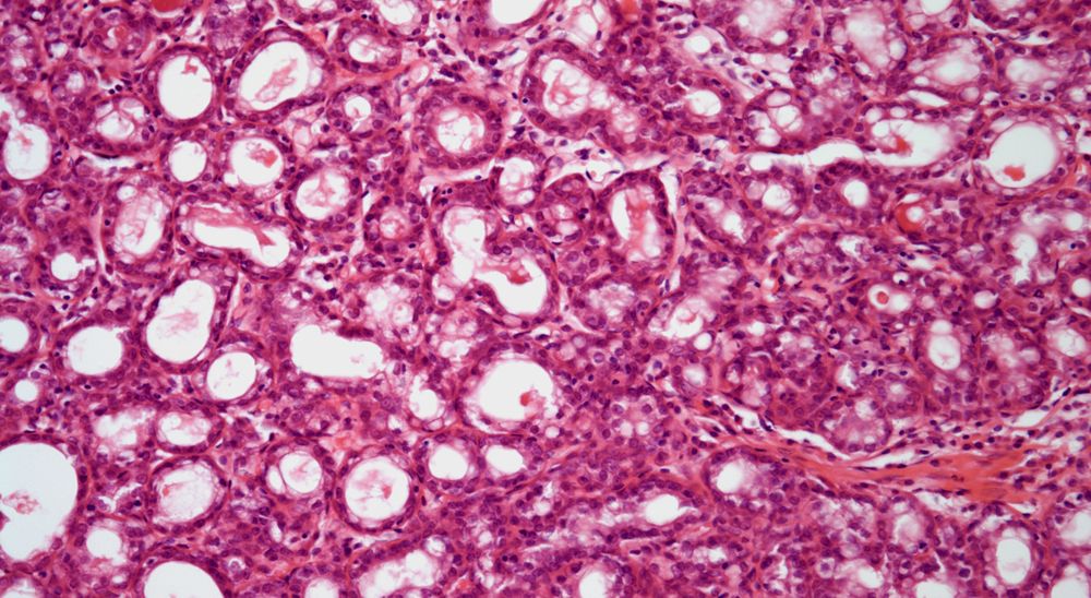 A 32-year-old woman, who had recently delivered a baby, develops a nodule in her left breast. A biopsy is obtained.