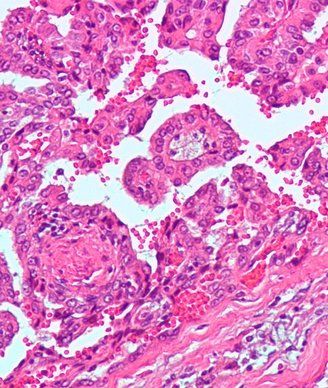 Micrograph of papillary renal cell carcinoma. Copyright 2009 Nephron.