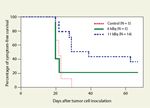 Henriksen et al addressed the therapeutic efficacy of alpharadin in the treatment of experimental skeletal (human breast cancer) metastases in nude rats (Figure 4).[39] All of the tumor-bearing control animals had to be sacrificed because of tumor-induced paralysis 20 to 30 days after injection with tumor cells, whereas the rats treated with a dose of 10 kBq or higher of 223Ra had a significantly increased rate of symptom-free survival (P < .05). A total of 36% of rats (5 of 14) treated with 11 kBq and 20% of rats (1 of 5) treated with 6 kBq were alive beyond the 50-day follow-up period.