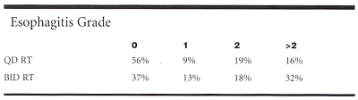 340:265-271, 1999). That study compared esophagitis in 417 patients receiving BID vs QD radiation.