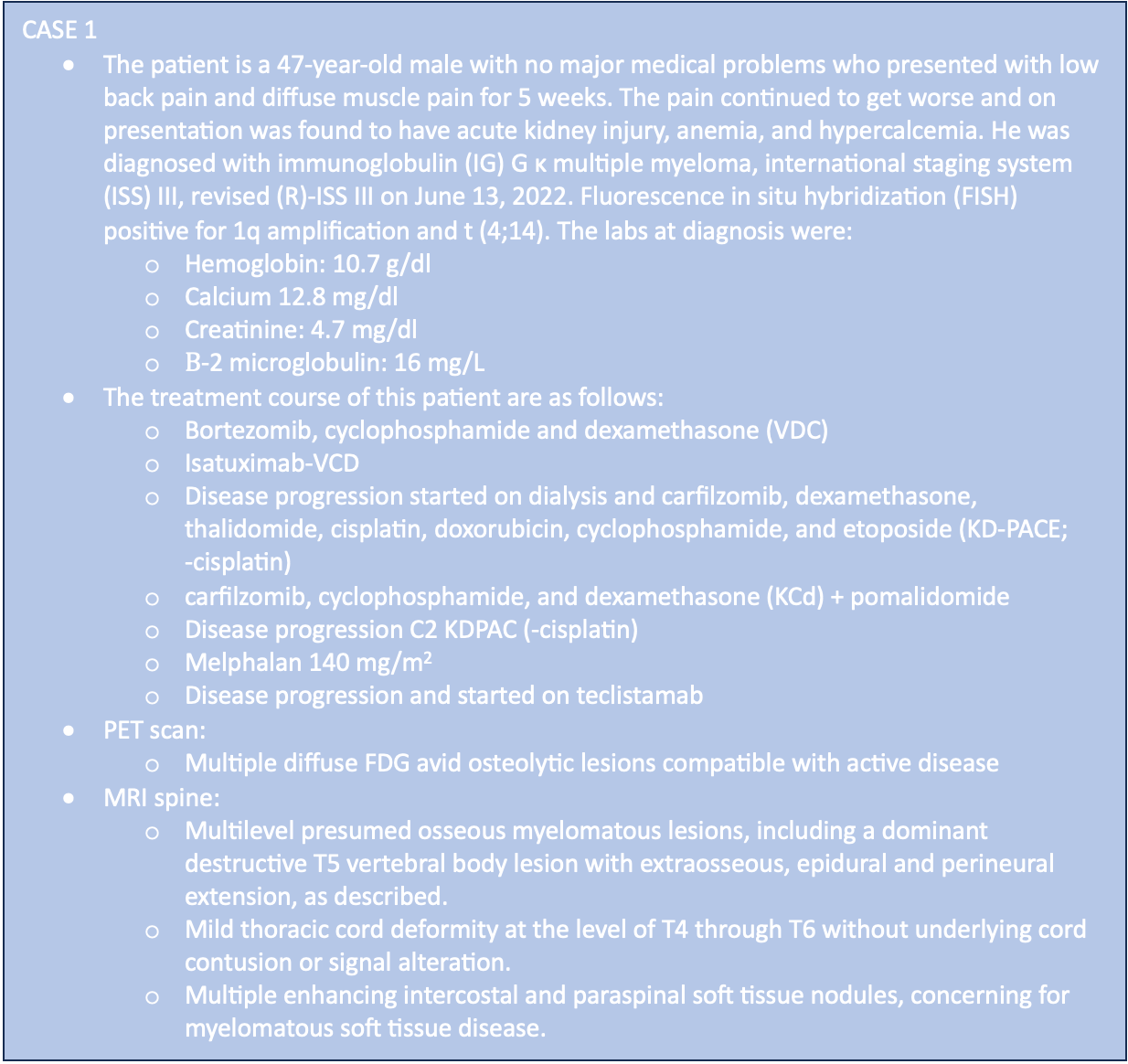 Schinke: During today’s discussion, we’ll review clinical scenarios, share our insights, and discuss recent updates in the management of patients with relapsed/refractory multiple myeloma. We’ll begin with the clinical scenario of