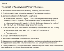 The treatments discussed above and summarized in Table 3 are the critical elements of therapy. Other therapies, such as atropine administration, should be reserved for patients with bradycardia.[15] Therapies such as administration of antihistamines, including both blockers of the H1 receptor and H2 histamine receptors can be considered, although anaphylaxis is dependent on numerous mediators that are not affected by these medications. Administration of glucocorticoids is not a critical aspect of the treatment of anaphylaxis and should be considered only after all of the therapies described in Table 3 have been implemented.