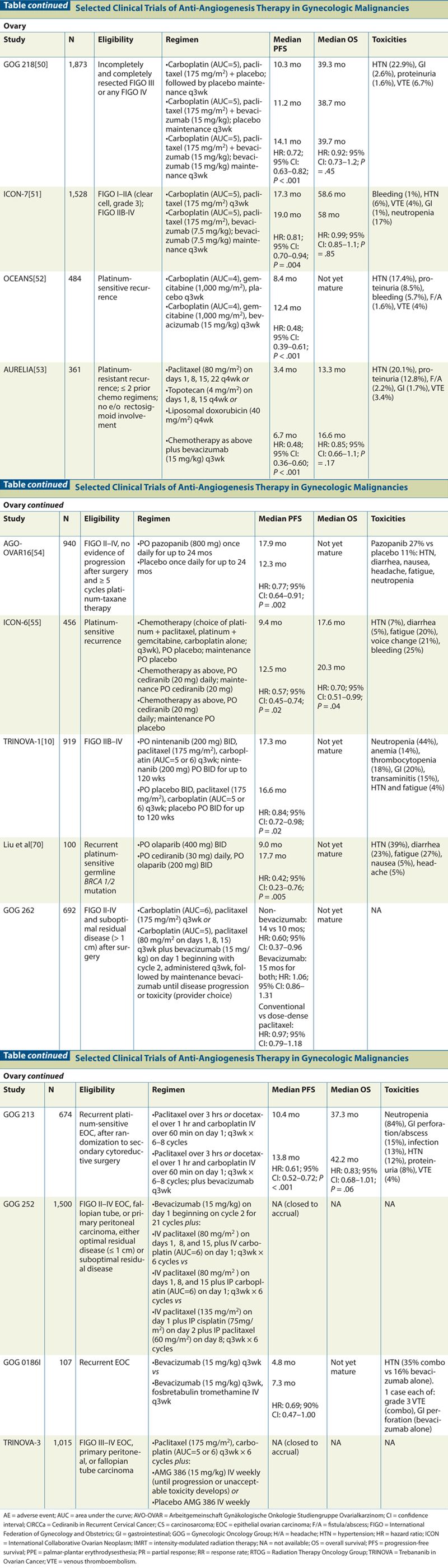 Table (Ovary): Selected Clinical Trials of Anti-Angiogenesis Therapy in Gynecologic Malignancies
