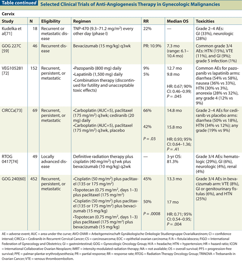 Table (Cervix): Selected Clinical Trials of Anti-Angiogenesis Therapy in Gynecologic Malignancies