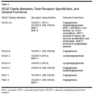 4. Gerwins P, Skoldenberg E, Claesson- Welsh L: Function of fibroblast growth factors and vascular endothelial growth factors and their receptors in angiogenesis. Crit Rev Oncol Hematol 34:185-194, 2000.