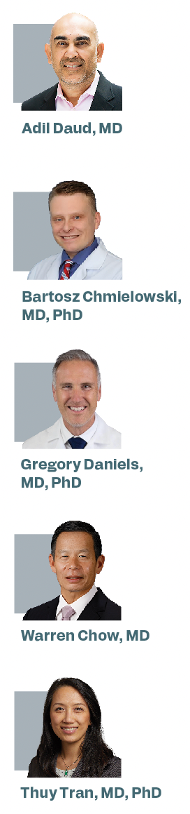 Adil Daud, MD, HS clinical professor in the Department of Medicine (hematology/oncology) at the University of California, San Francisco (UCSF), and director of melanoma clinical research at the UCSF Helen Diller Family Comprehensive Cancer Center, led the panel. His fellow panelists were Bartosz Chmielowski, MD, PhD, a clinical professor of medicine in the Division of Hematology-Oncology at the UCLA Jonsson Comprehensive Cancer Center at UCLA Health in Los Angeles, California; Gregory Daniels, MD, PhD, a medical oncologist and professor of medicine at UC San Diego Health in California; Warren Chow, MD, clinical professor in the Division of Hematology/Oncology in the School of Medicine and associate director for clinical sciences in the UCI Health Chao Family Comprehensive Cancer Center in Orange, California; and Thuy Tran, MD, PhD, assistant professor of medicine (medical oncology) at Yale School of Medicine in New Haven, Connecticut.