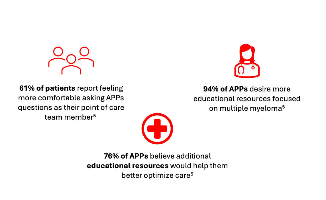 To help support APPs in their care for people living with multiple myeloma, the Make It HAPPen™ campaign from Johnson & Johnson and the Advanced Practitioner Society for Hematology and Oncology (APSHO) offers resources to support APPs across academic and community settings. This includes overviews of treatment options and flashcards on managing potential adverse events, including infection, CRS and neurotoxicity, and tools for patient education and communication.